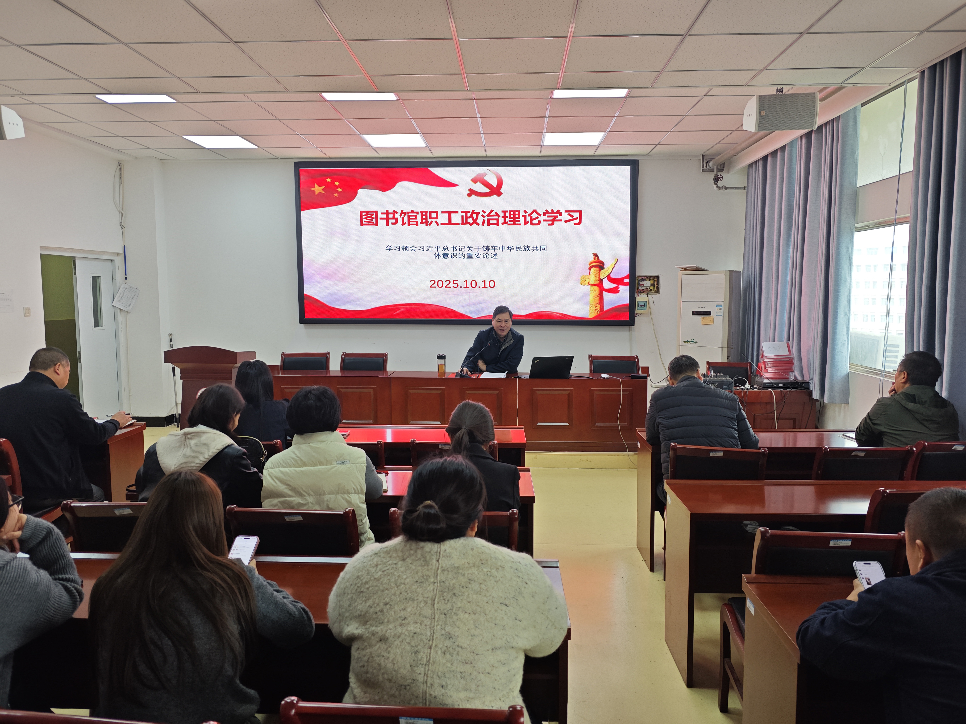 10月10日下午,在梁园校区图书馆六楼报告厅举行了由图书馆全体职工参加的政治理论学习活动。会议由总支书记主持。