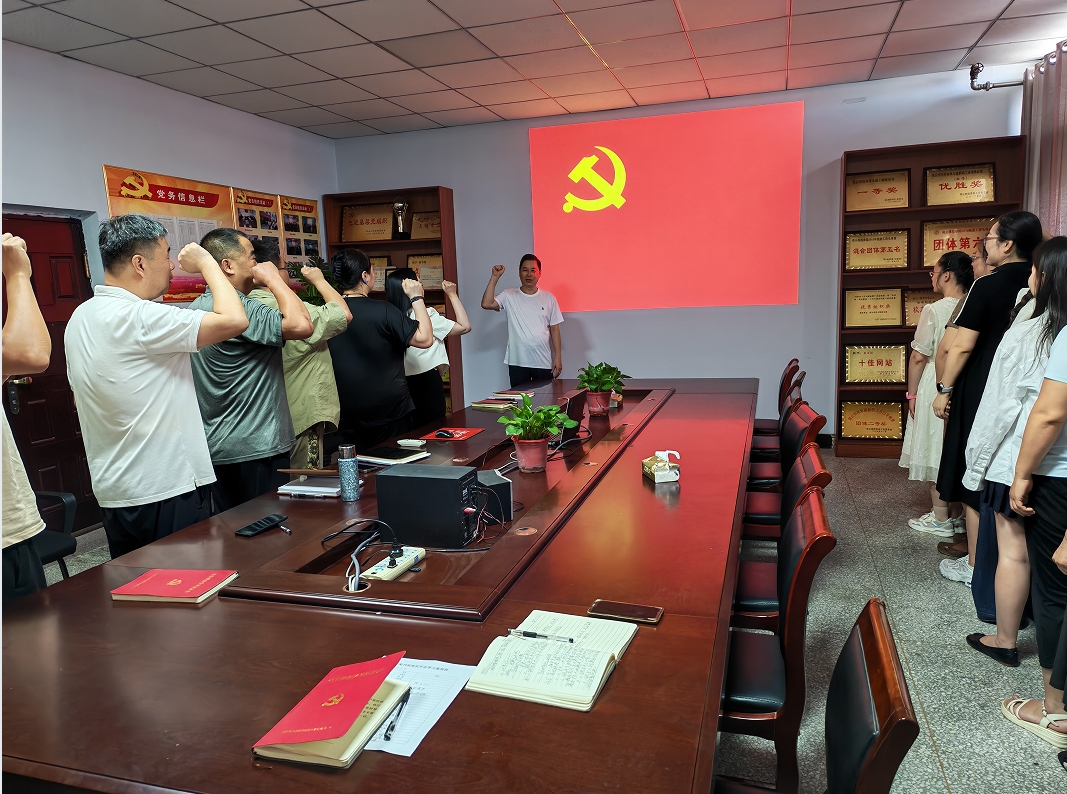 活动在庄严的入党宣誓中拉开序幕。面对鲜红党旗,全体党员高举右拳,在党总支书记史振立同志领誓下重温入党誓词。铿锵有力的誓言回荡在图书馆党员活动室,彰显着新时代图书馆人坚守初心、勇担使命的坚定决心。